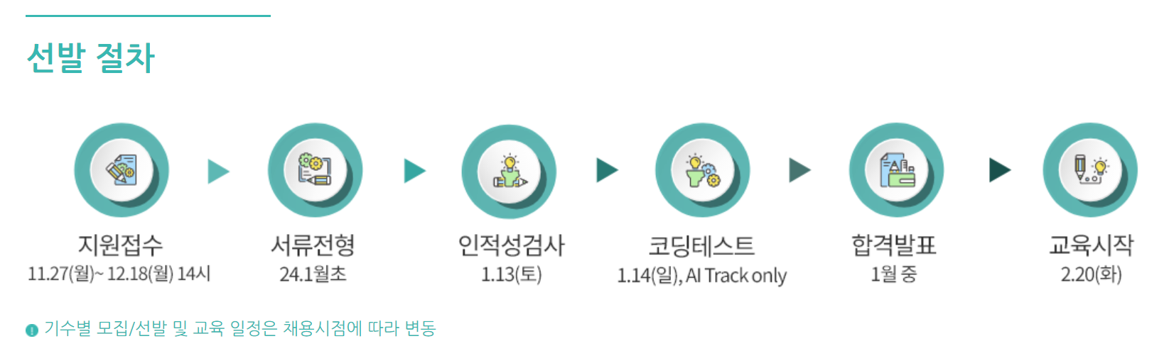 트랙이 두 가지가 있는데 나는 AI트랙을 지원했고, AI트랙은 코딩테스트를 추가로 응시해야 한다.