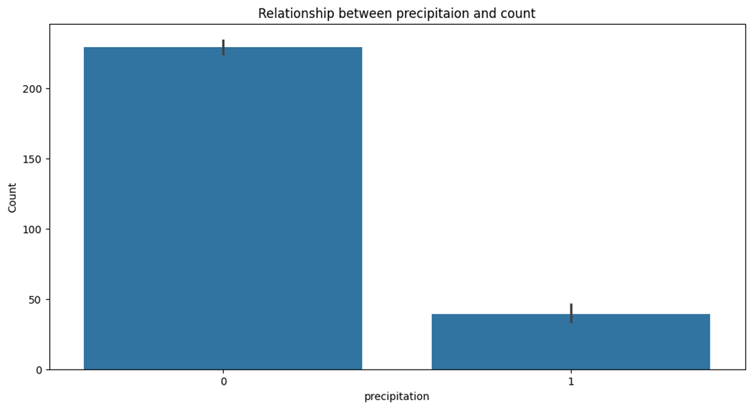 강우 여부는 이용자의 대여 결정에 중요한 요소임을 나타내는 것을 확인하였고, 비가 오는 날 대여 수요가 많이 변동할 수 있으므로, 이에 대비한 운영 전략이 필요하다고 결론 내렸다.