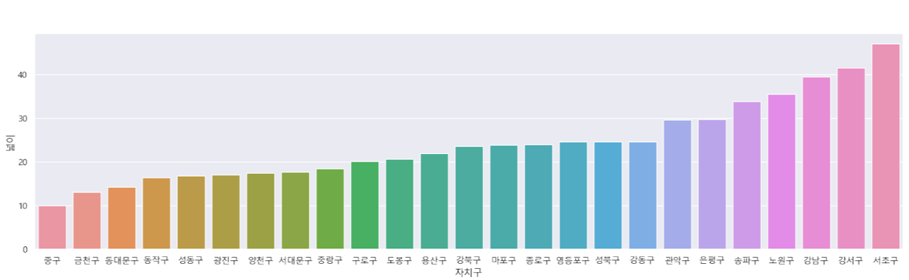 가설1은 위 그래프 외에도 같은 자치구 내 평균 이동 시간 분석 등을 통해 자치의 넓이가 클수록 정류장의 수가 많고, 정류장의 수가 많을 수록 정차 빈도가 잦아 평균 이동 시간이 자치구별 면적과 관련이 있을 것이라고 판단하였다.
