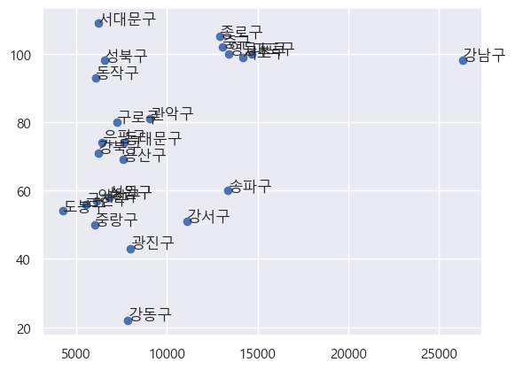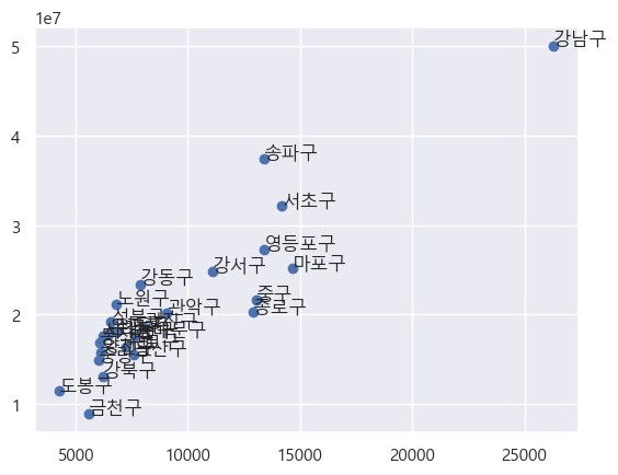 가설1. 자치구별 면적이 클수록 정류장수가 많고 평균이동시간이 길 것이다.