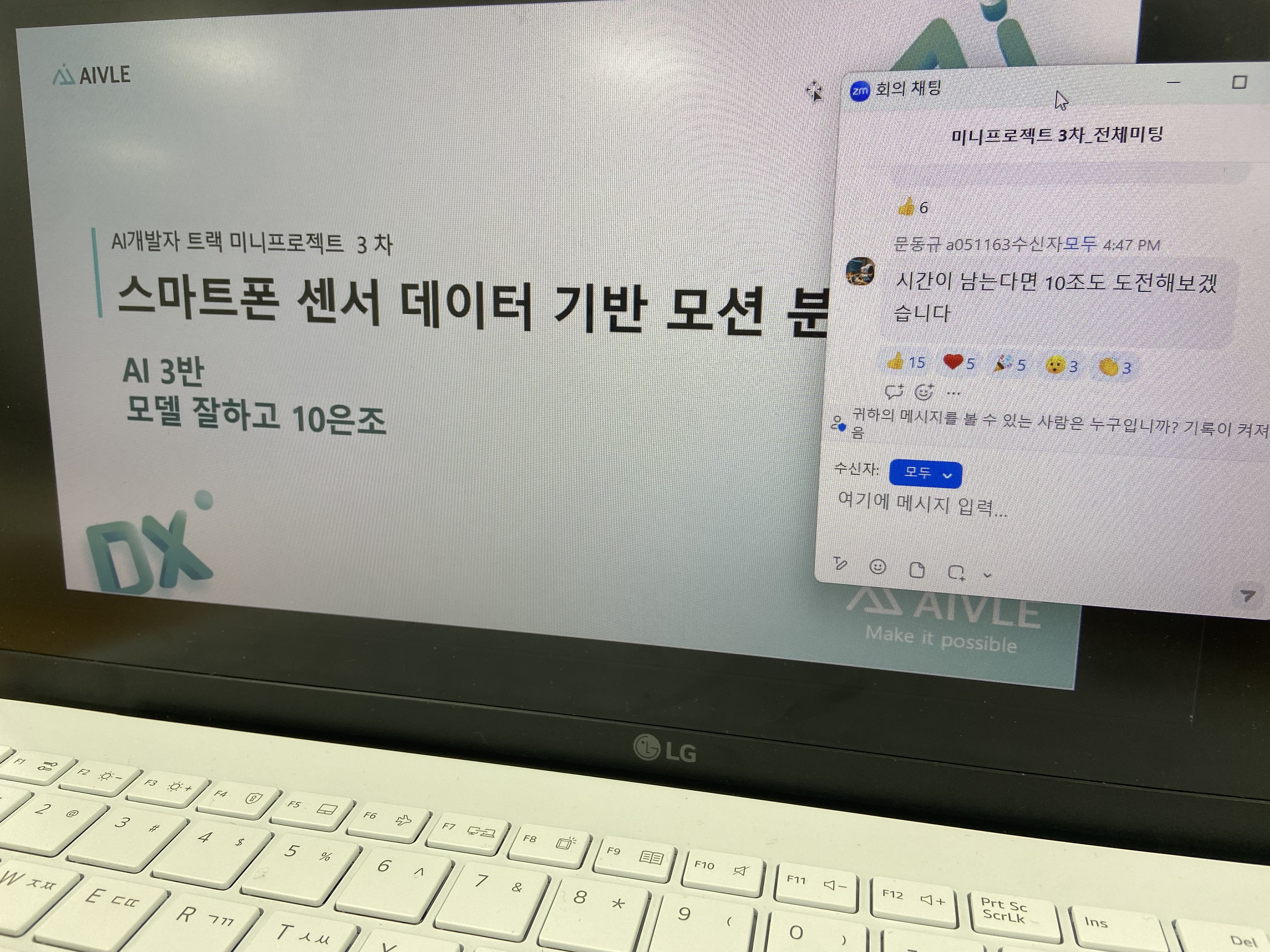 kaggle이 처음이었던 나는 제출한 것에 의의를 두었다.. 상위 등수의 사람들의 발표를 들으면서 측정시간 변수이 정확도에 많은 영향을 미쳤다는 것을 새롭게 알게되었고 의외였다. 나는 행동을 측정하는 시간과 관련된 변수는 행동을 예측하는데 영향이 적을 거라고 예상하여 나는 제거하고 모델을 설계하였기 때문이다. 그 결과 모델의 정확도가 매우 낮았는데 그 이유가 시간 변수의 제외의 영향이라는 것을 상위 등수 사람들의 발표를 통해 알게 되었다.