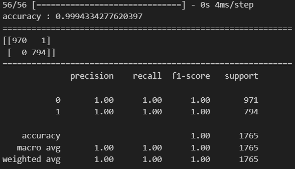 각 모델을 만들고 지금까지 과정을 한 개로 합치고 실제값을 넣어 테스트하여 heatmap으로 시각화까지 진행하였다. 모델의 정확도는 0.9816가 나왔다.