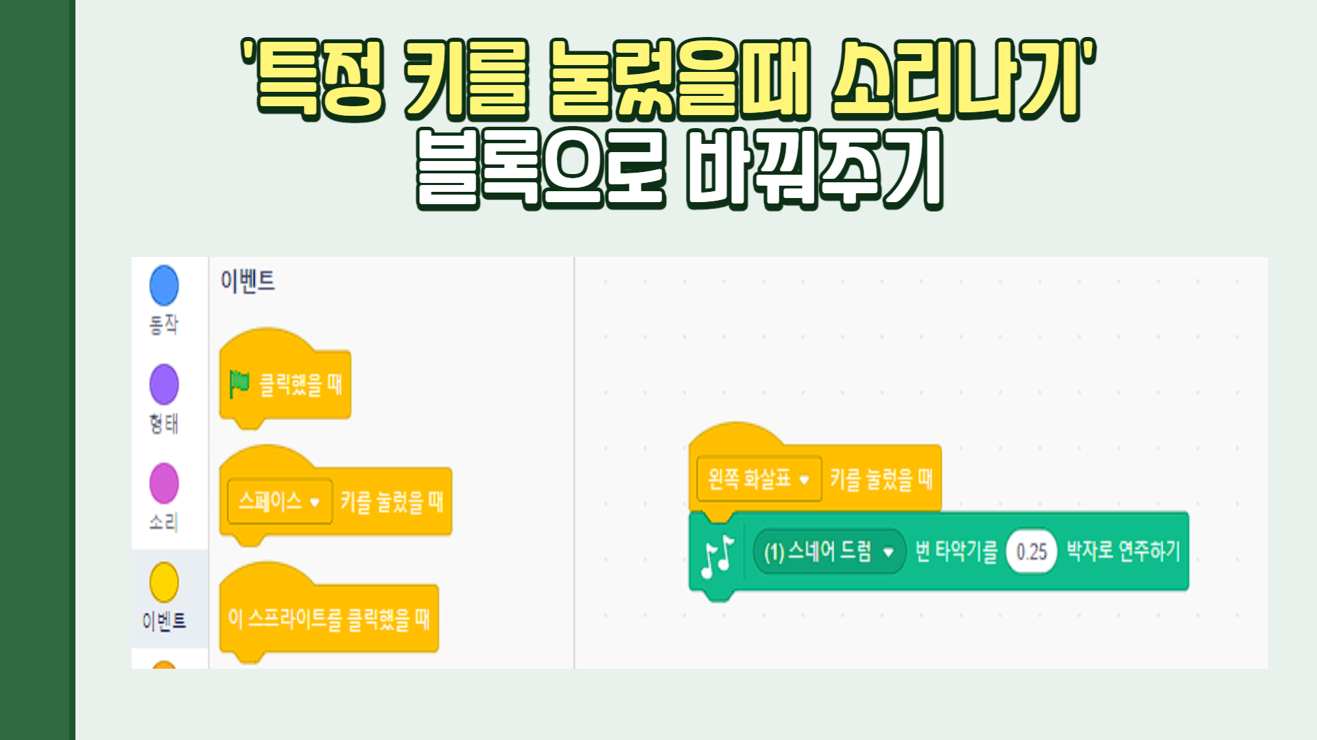 마지막으로 학생들이 키보드로 악기를 연주할 수 있도록 특정 키보드를 누르면 해당하는 악기 소리가 나도록 하는 방법을 가르쳐 주었다.