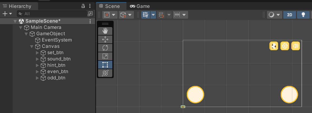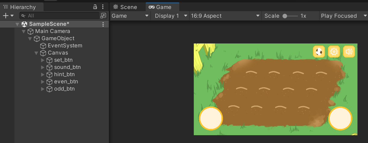 설정한 배경에 설정, 소리, 힌트, 홀짝버튼을 생성해보자.
