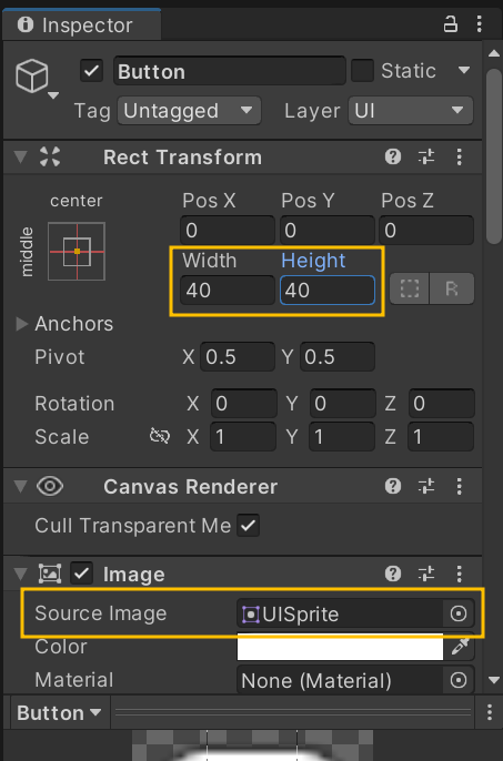Source Image에 해당되는 버튼 이미지를 드래그해준다.