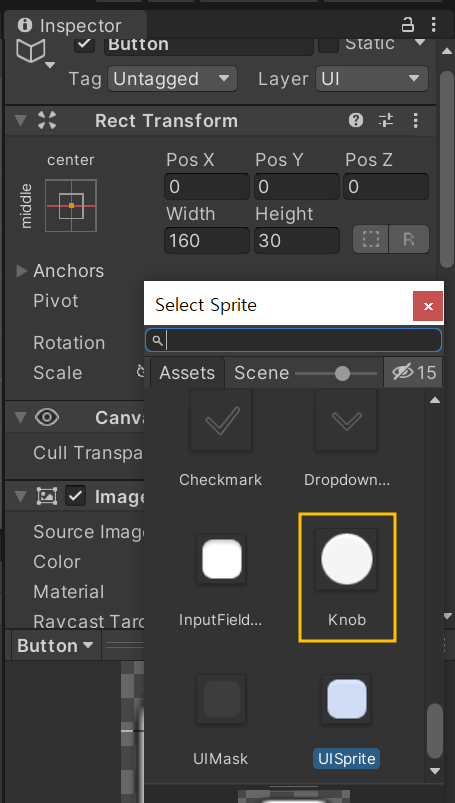 그리고 Source Image에서 맨오른쪽 아이콘 > Knob를 클릭한다.