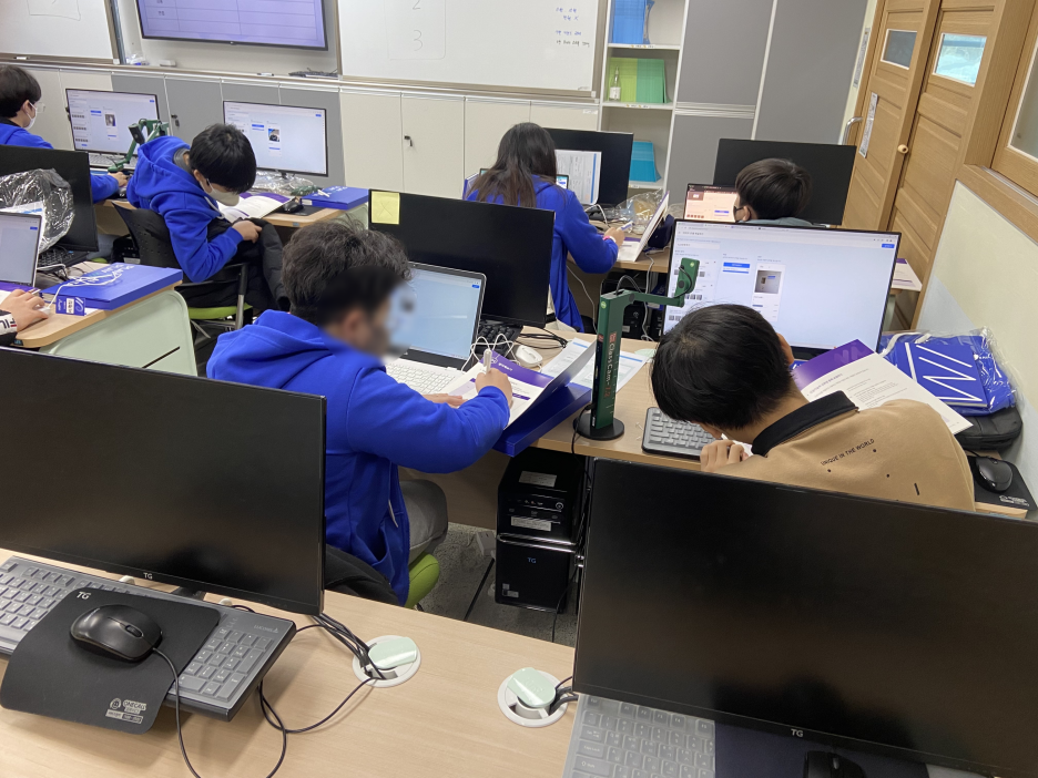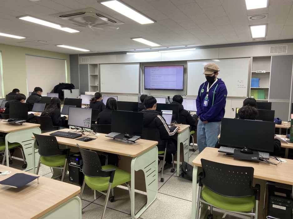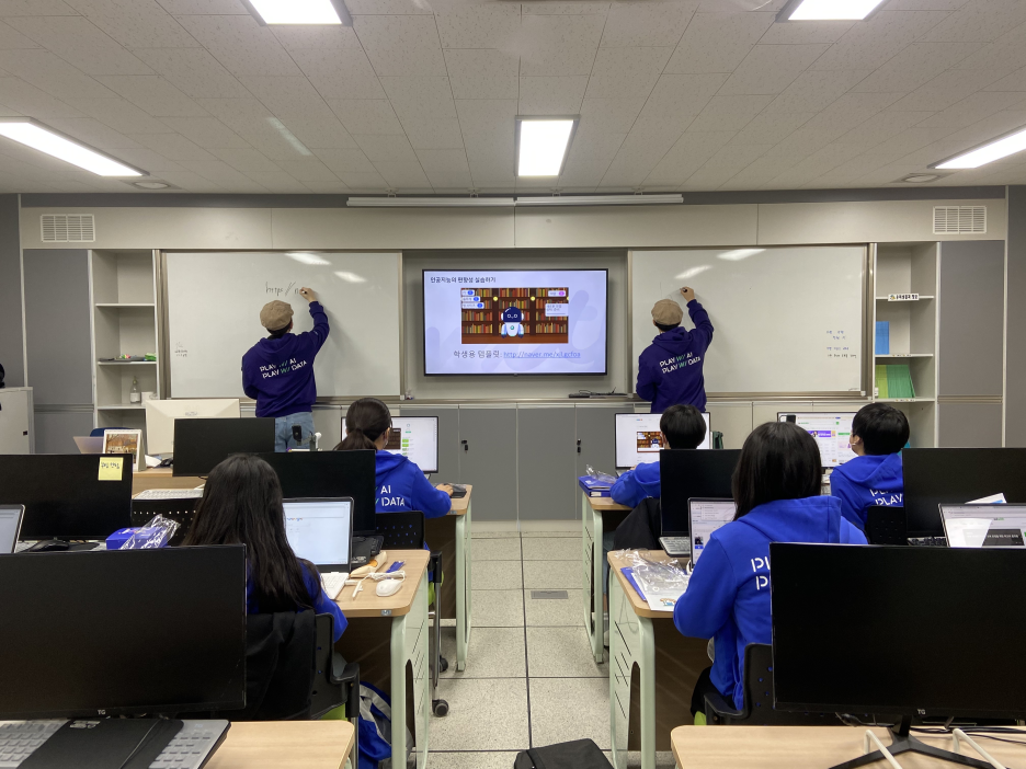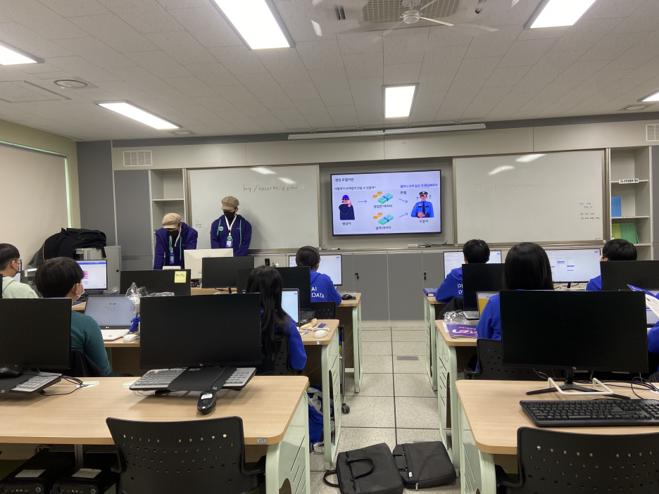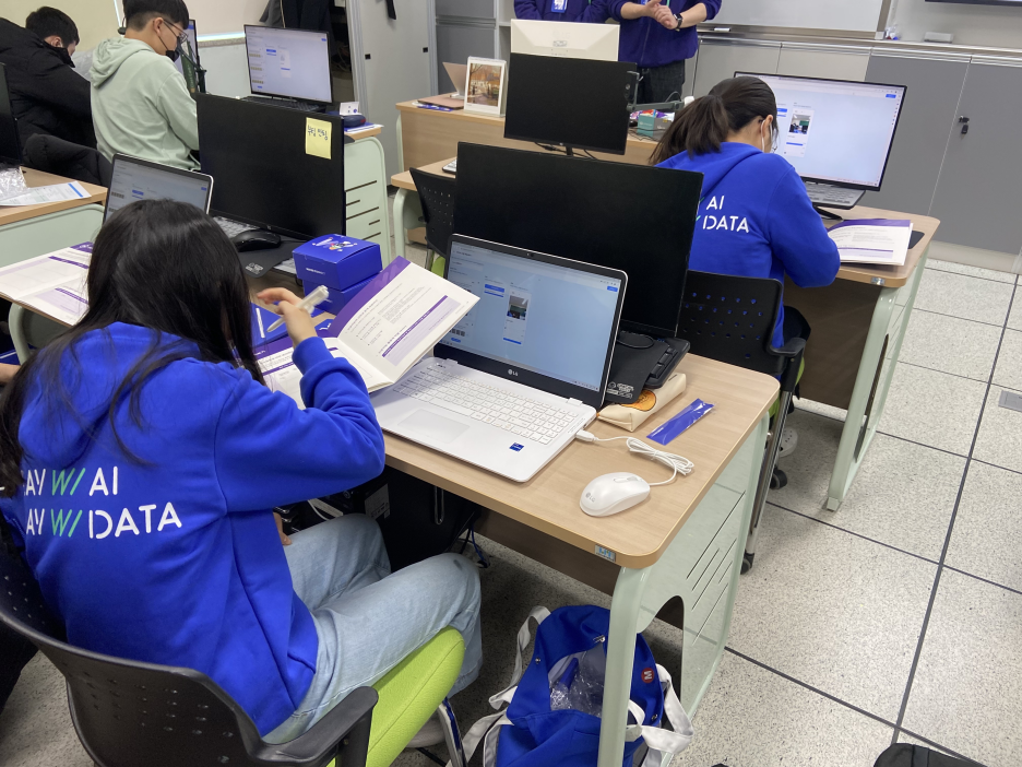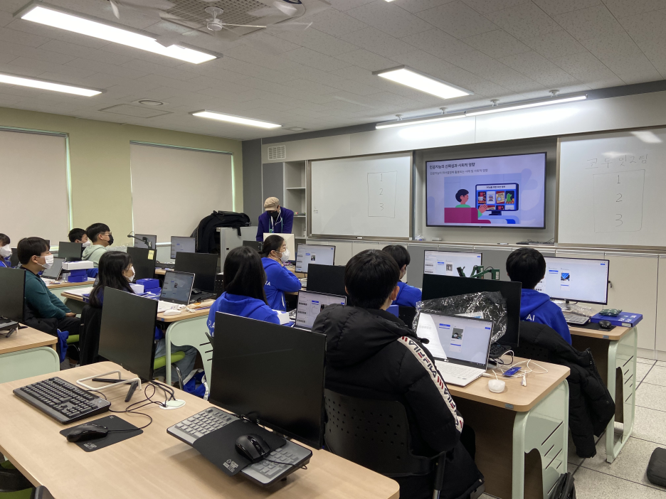 실습이 다 끝나고 인공지능이 악용된 사례에 대한 영상을 시청 후 인공지능이 악용되었을 때 어떤 문제가 발생하는지 교재를 작성하고 발표하는 시간을 가졌다.