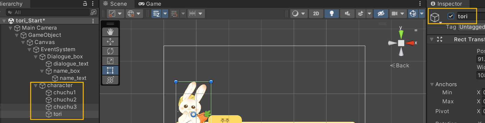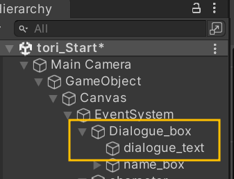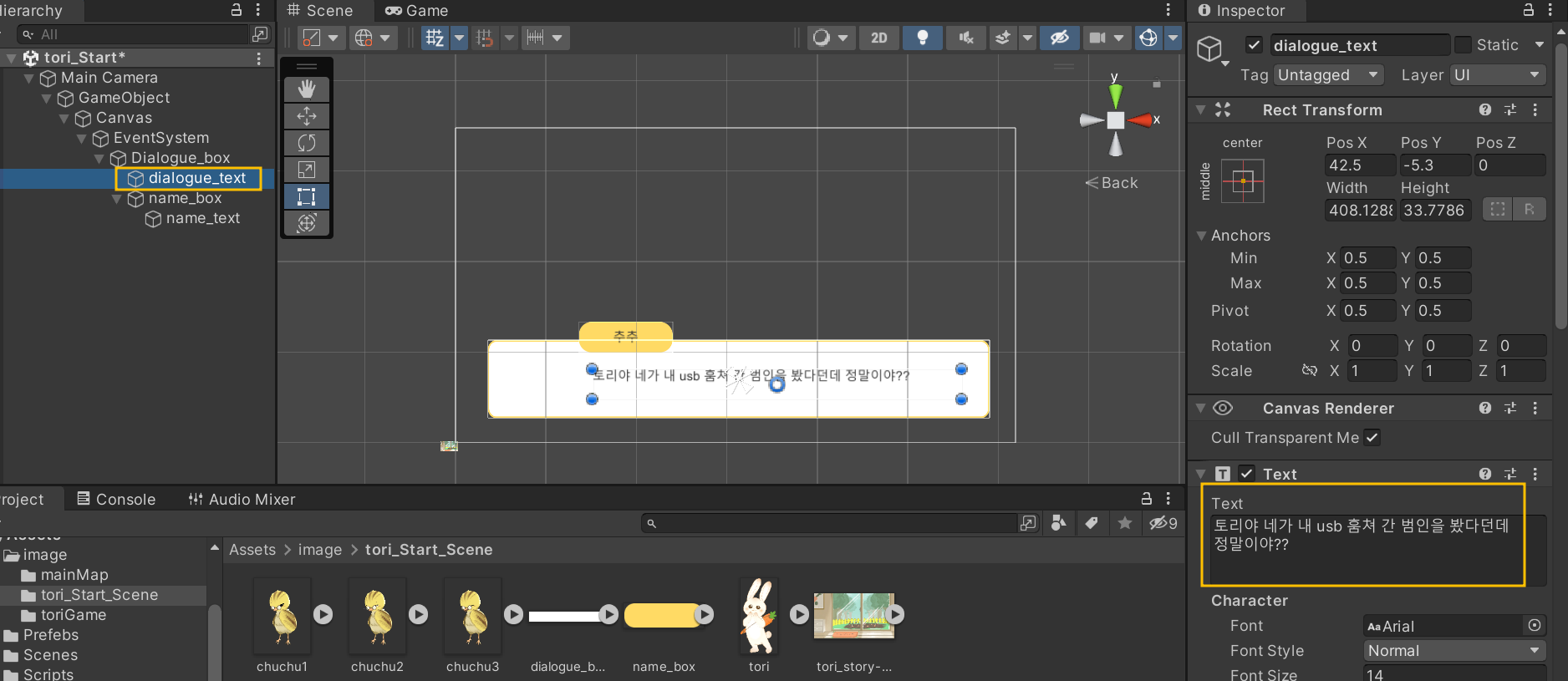 그리고 Dialogue_box아래에 name_box와 name_text도 동일한 방법으로 생성해준다.