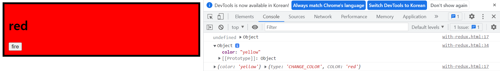 redux 대부 툴 설치 방법 https://github.com/zalmoxisus/redux-devtools-extension 위에 있는 깃허브로 들어가 내리다보면 크롬버전으로 설치할 수 있는 것이 나온다. Chrome Web Store를 클릭하여 들어가 확장기능을 설치한다. 설치하고 내리다보면 Basic store가 있다. 연두색 부분에서 +기호를 빼고 복사하여 red함수 위에 createStore한 함수 안에 붙여넣기 해준다. 홈페이지로 가 개발자도구를 클릭하면 redux가 생성된 것을 볼 수 있다. redux 대부 툴 기능 fire버튼을 각각 클릭해보자. 버튼을 누를 때마다 바뀌는 state값을 보여준다. 따라서 redux 대부 툴이라는 것은 redux에서 store에게 전달된 action들을 버..