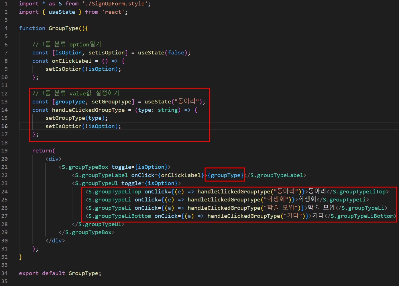 const [groupType, setGroupType] = useState("동아리");