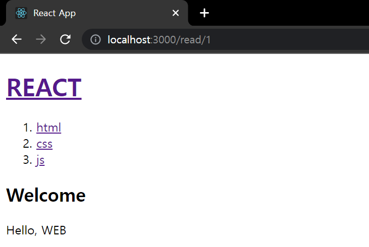 위 html 태그는 src가 무엇이냐에 따라 이미지가 달라지고, width가 무엇이냐에 따라 이미지의 크기가 달라진다. 즉 src, width와 같은 속성들 덕분에 이미지 태그는 입력값을 가질 수 있다. 이번에는 컴포넌트에 속성을 적용해보는 방법에 대해 알아볼 것이다. 우선 코드를 아래와 같이 수정한다. import logo from './logo.svg'; import './App.css'; function Header(props){ return {props.title} } function Nav(){ return html css js } function Article(props){ return {props.title} {props.body} } function App() { return ( ); } ..